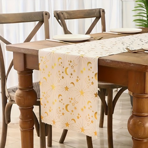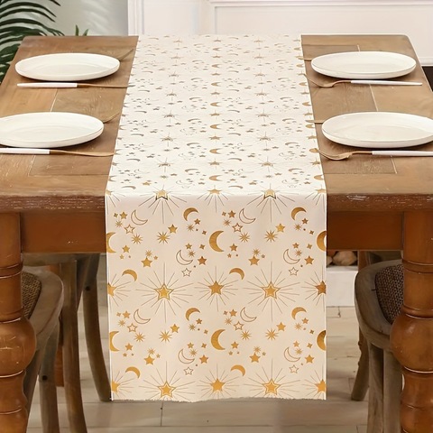 डेरीई लक्जरी चंद्रमा स्टार गोल्ड मखमली टेबल धावक सुरुचिपूर्ण डाइनिंग टेबल डेकोर