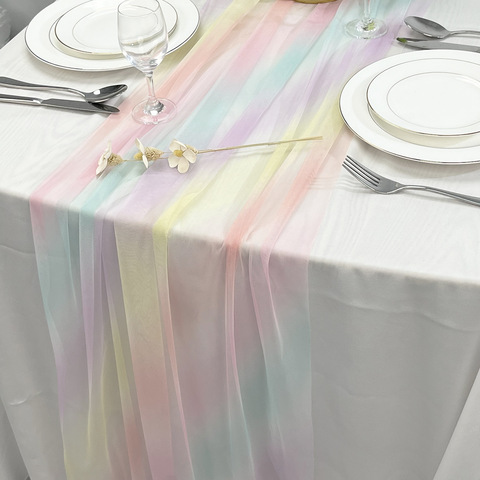 डेरुई बोहेमियन टुले टेबल धावक इंद्रधनुष ग्रेडिएंट टले टेबल फ्लैग सॉफ्ट इंद्रधनुष गेज टेबल सजावट